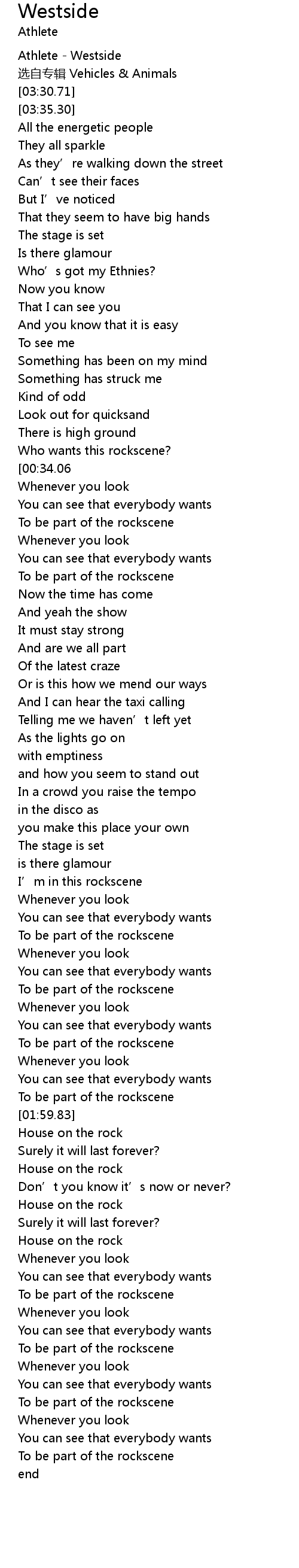 | [01:35.00] | To be part of the rockscene |