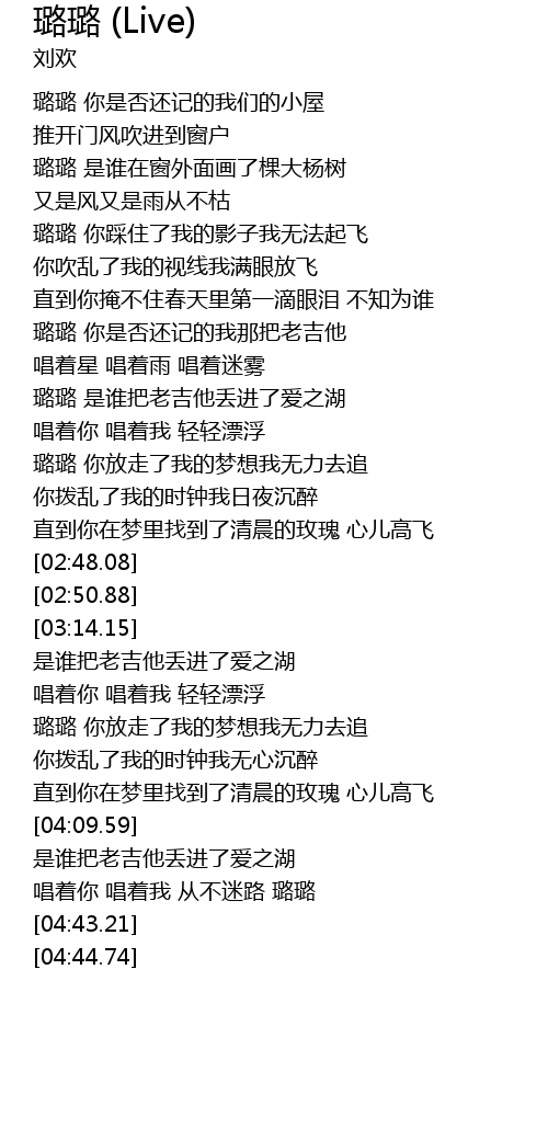 | [01:51.66] | 璐璐 是谁把老吉他丢进了爱之湖 |