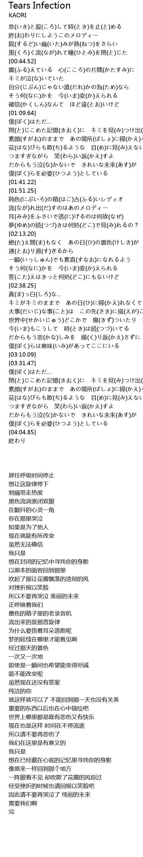 | [03:54.94] | だからもう泣(な)かないで きれいな未来(あす)が |