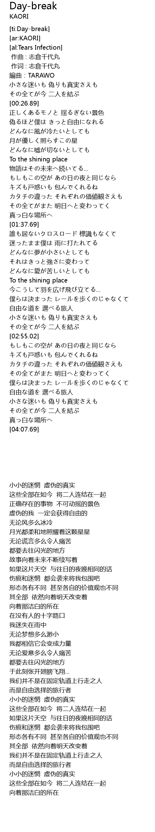 | [00:03.52] | 小さな迷いも 偽りも真実さえも |