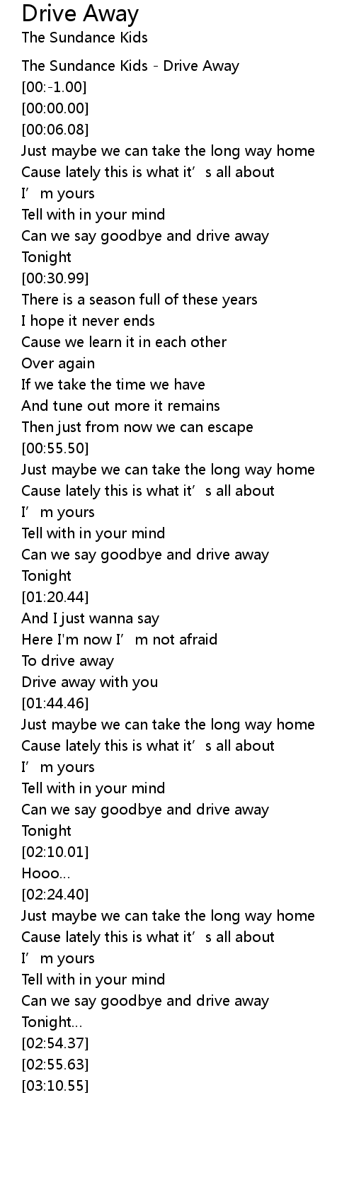 | [00:-2.00] | The Sundance Kids - Drive Away |