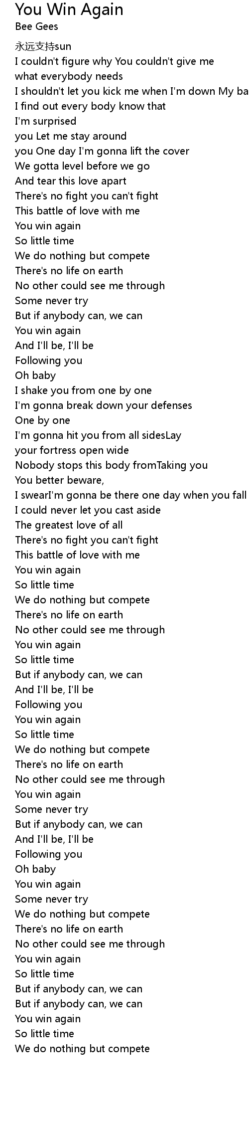 | Song | You Win Again |