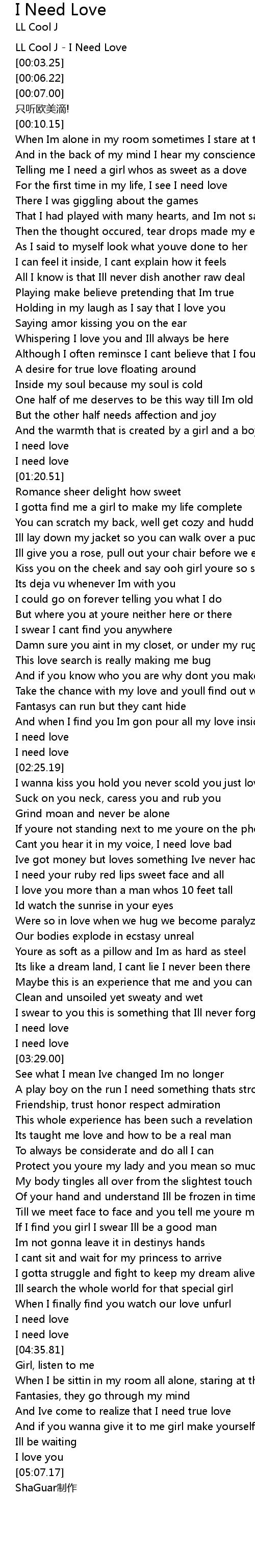 | [00:00.56] | LL Cool J I Need Love |