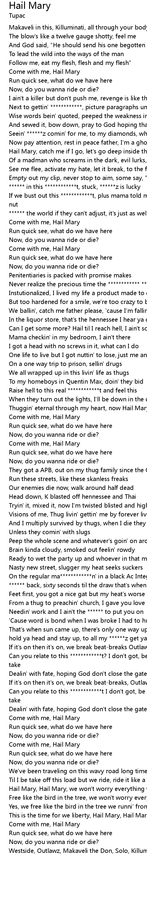 Thuggin' eternal through my heart, now Hail Mary, ****** |