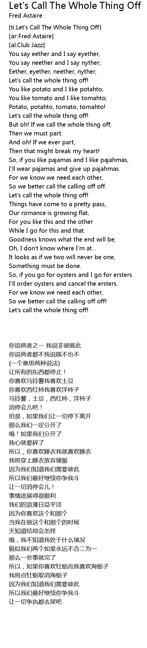 [ti:Let's Call The Whole Thing Off] |