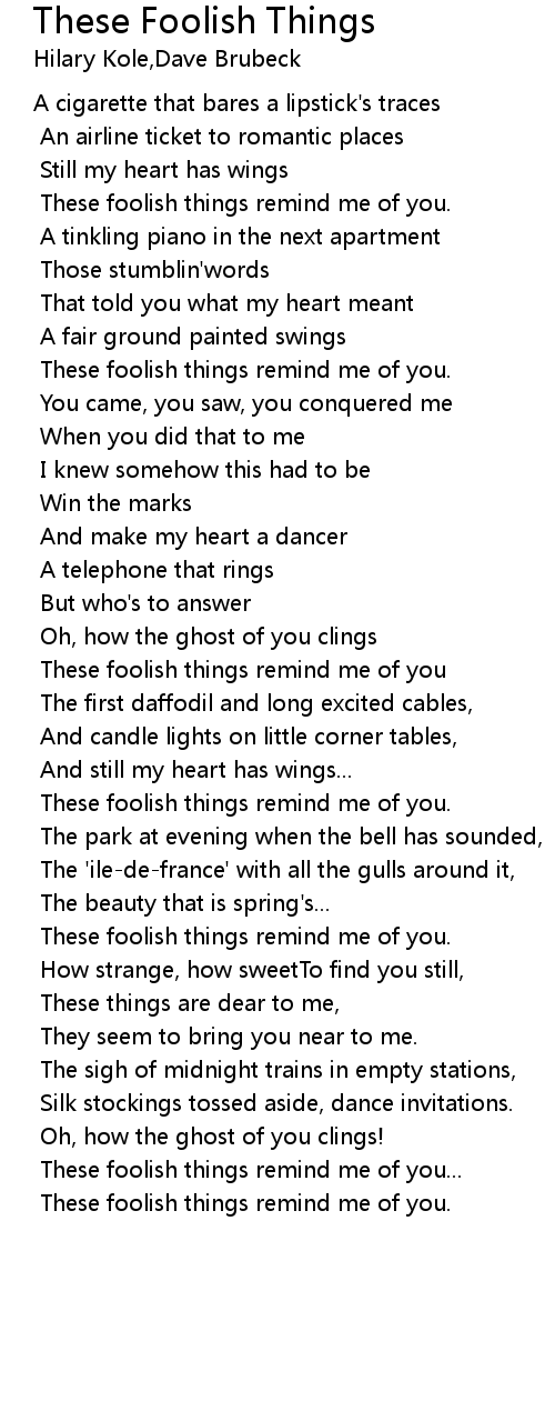These foolish things remind me of you. |