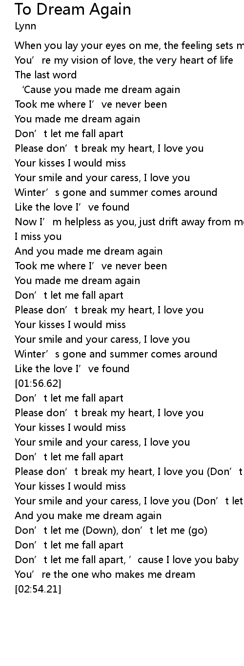 | [01:15.81] | And you made me dream again |