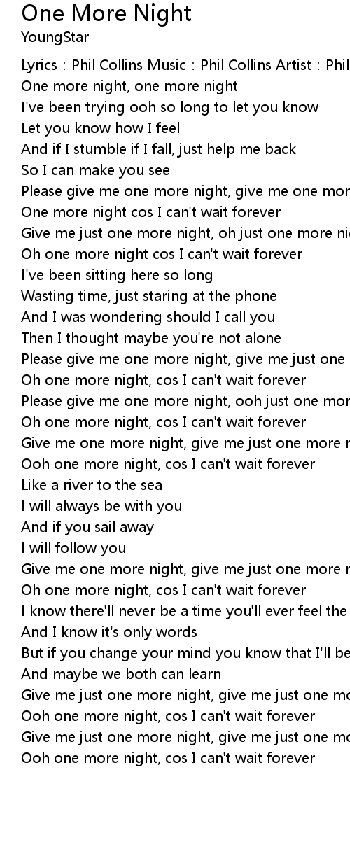 | Oh one more night cos I can' t wait forever | |