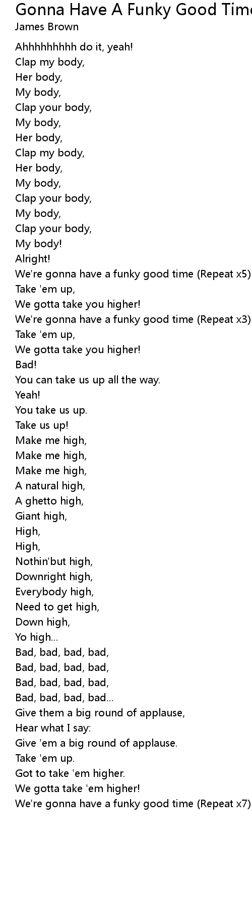 We're gonna have a funky good time (Repeat x7) |