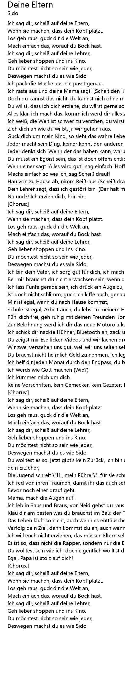 | Ich sag dir, schei auf deine Eltern, | |