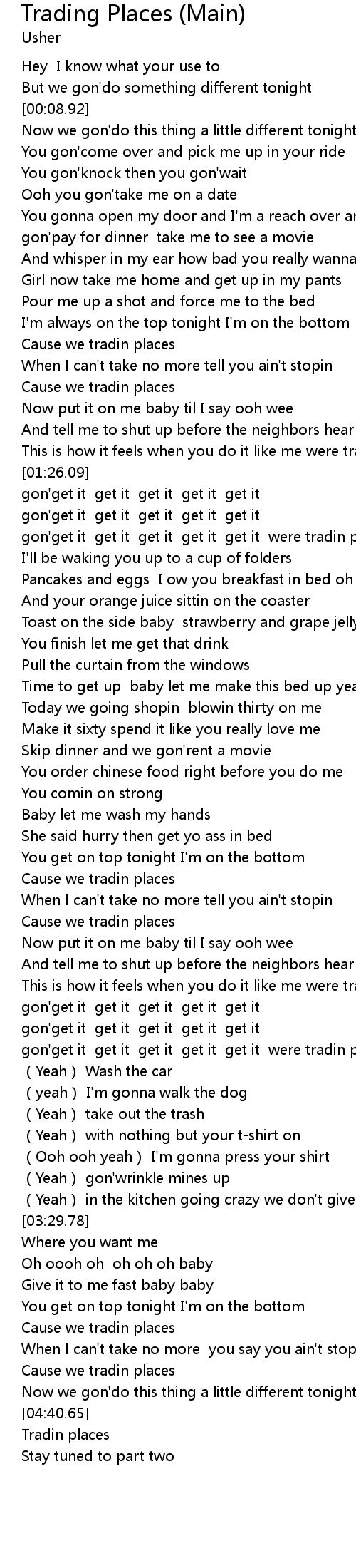 | [01:37.46] | gon'get it get it get it get it get it were tradin places |