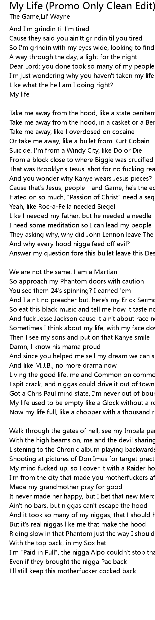 And it took so many of my niggas, that I should hate the hood |