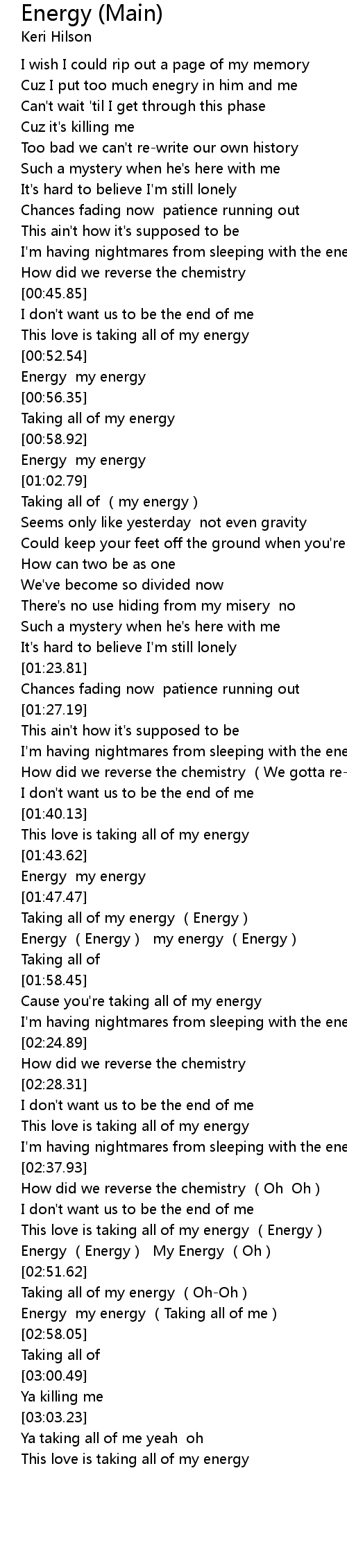 | [02:55.70] | Energy my energy (Taking all of me) |