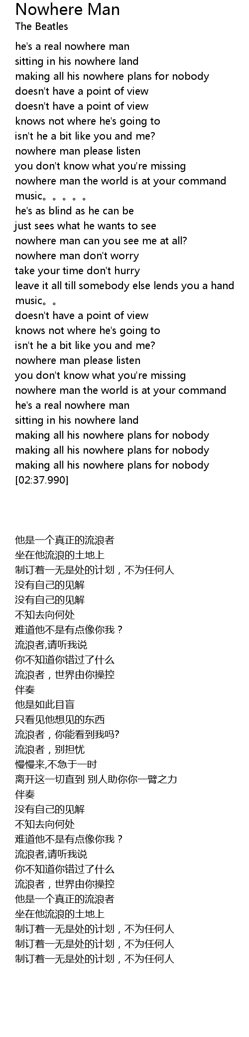 | [00:31.109] | nowhere man please listen |