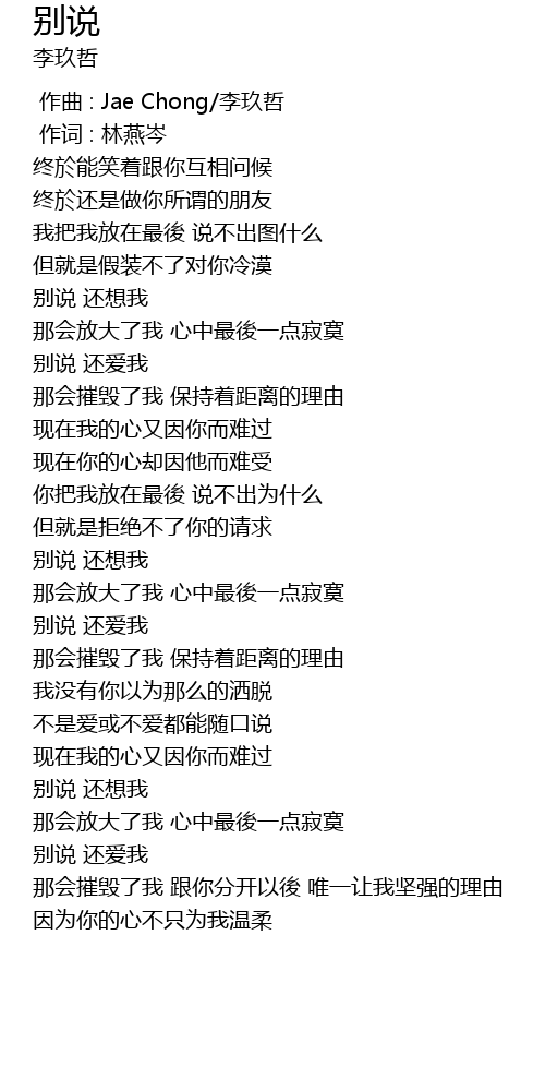 | [00:00.00] | 作曲 : Jae Chong/李玖哲 |