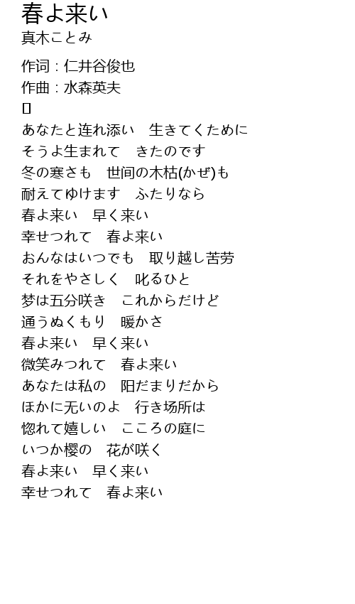 | 幸せつれて 春よ来い |