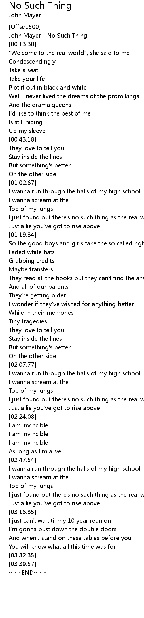 | [00:00.10] | John Mayer - No Such Thing |
