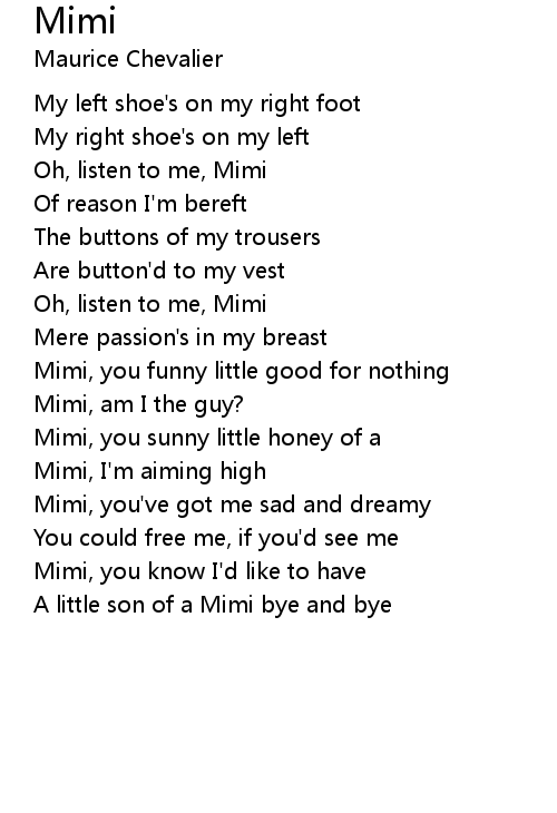| Oh, listen to me, Mimi | |