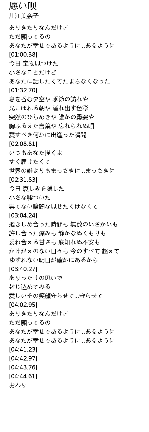 | [04:16.98] | あなたが幸せであるように…あるように |