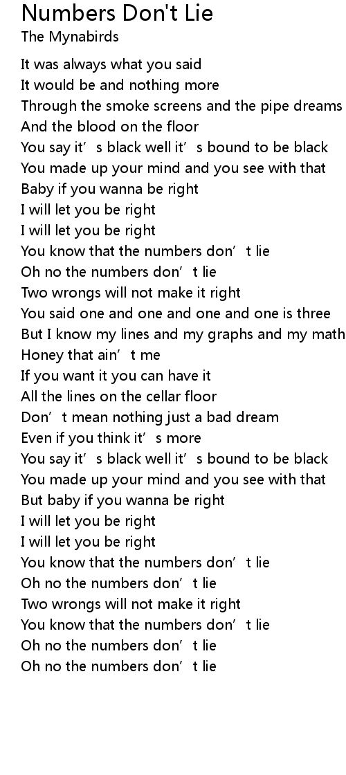 | You know that the numbers don' t lie | |