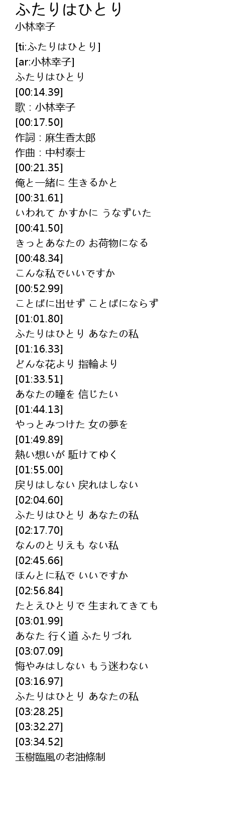 | [03:17.73] | ふたりはひとり あなたの私 |