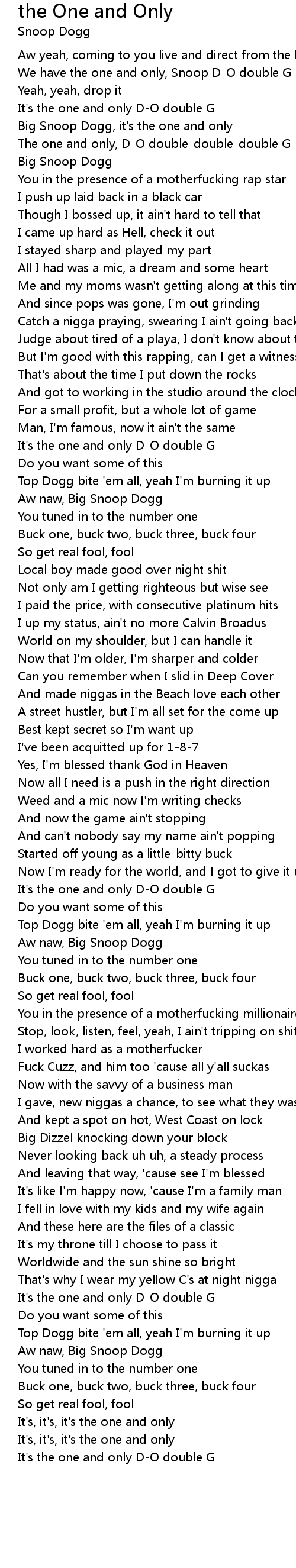 Big Snoop Dogg, it's the one and only |