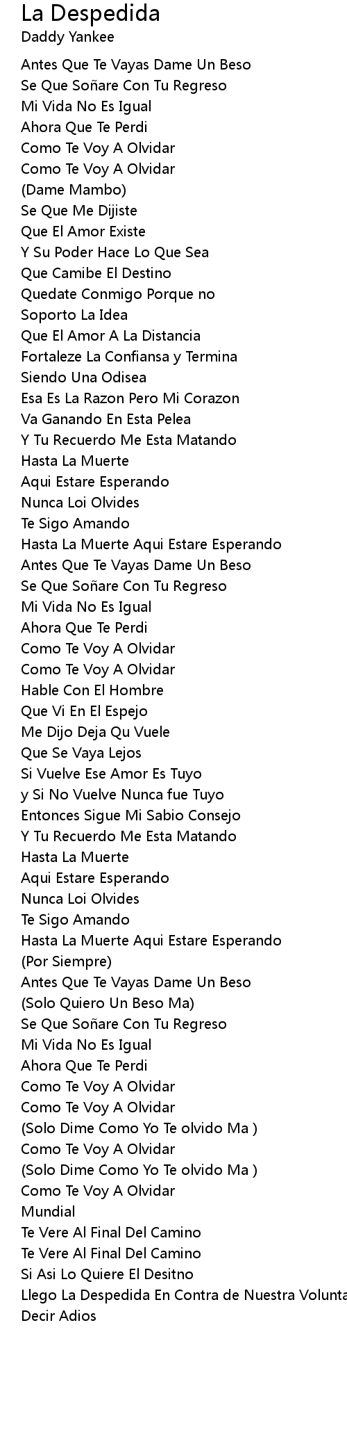 | Song | La Despedida |