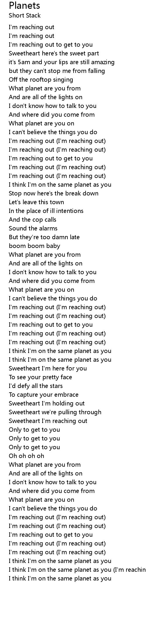 I think I'm on the same planet as you (I'm reaching out) |