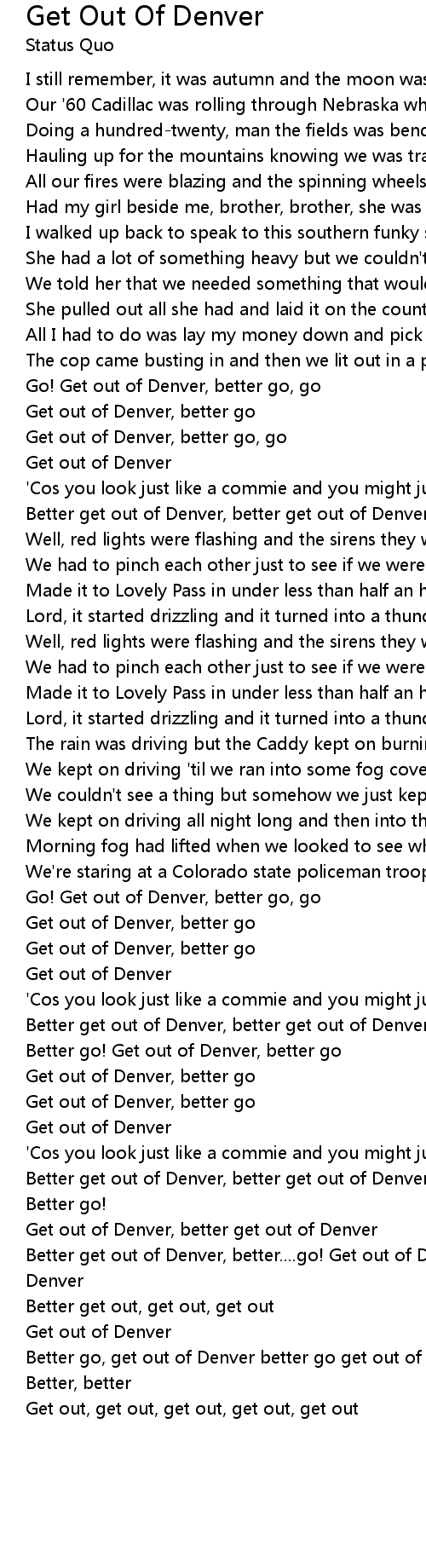 Better get out of Denver, better....go! Get out of Denver, better go, get out of Denver |