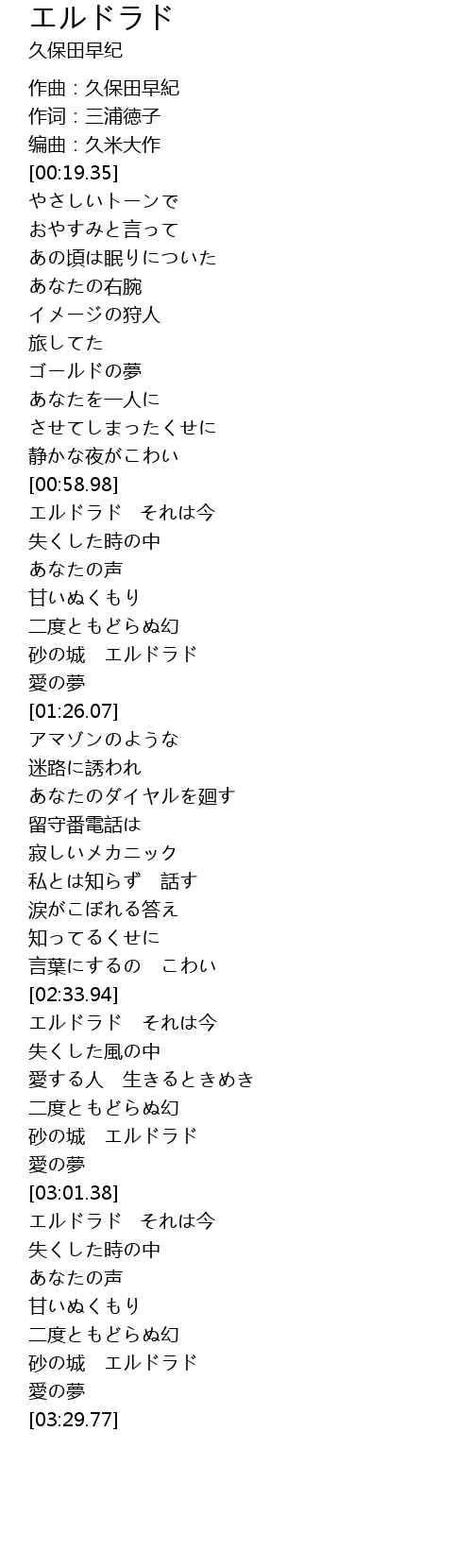| [03:02.79] | エルドラド それは今 |