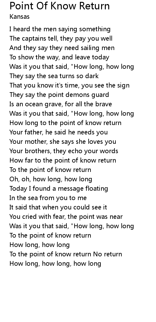 To the point of know return No return |