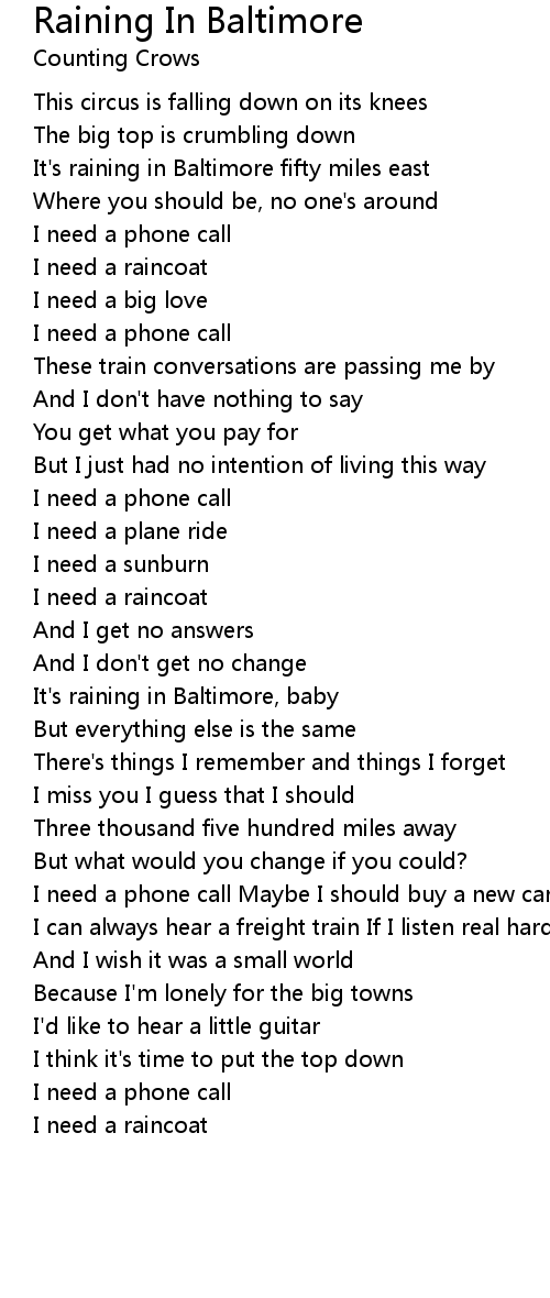 It's raining in Baltimore, baby |