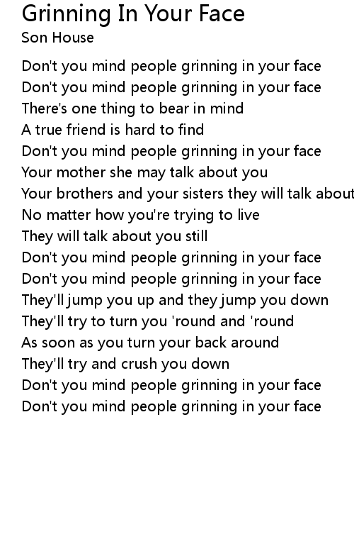 Don't you mind people grinning in your face |