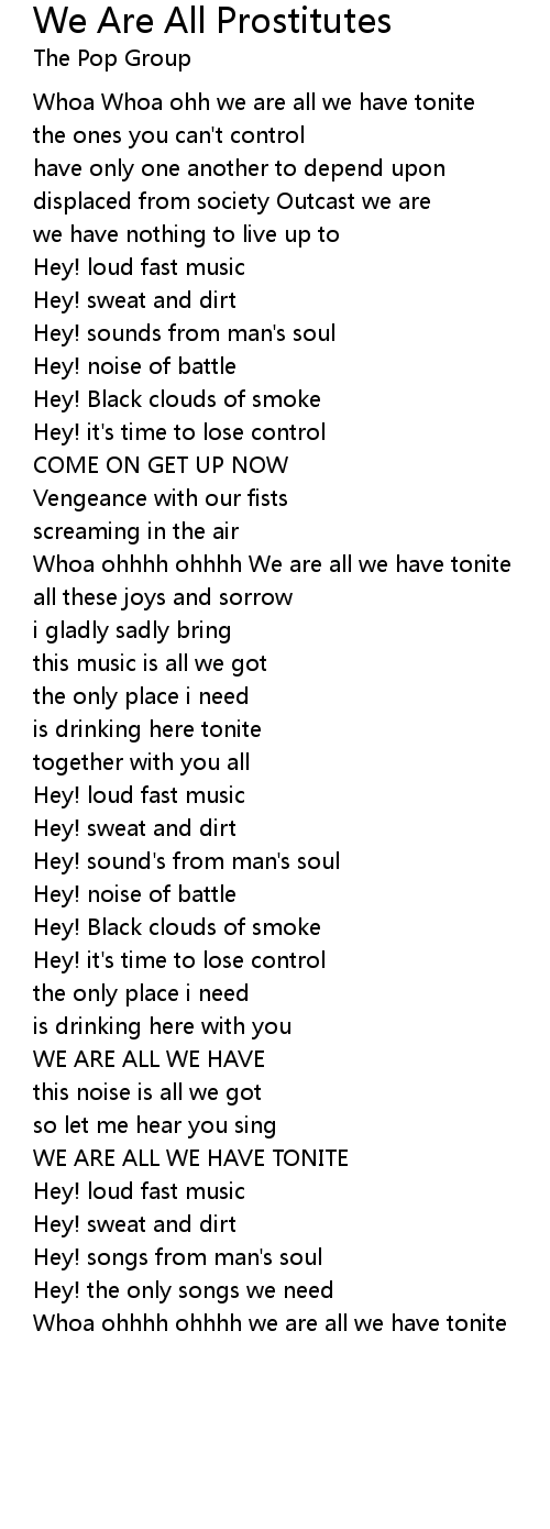 Whoa ohhhh ohhhh We are all we have tonite |