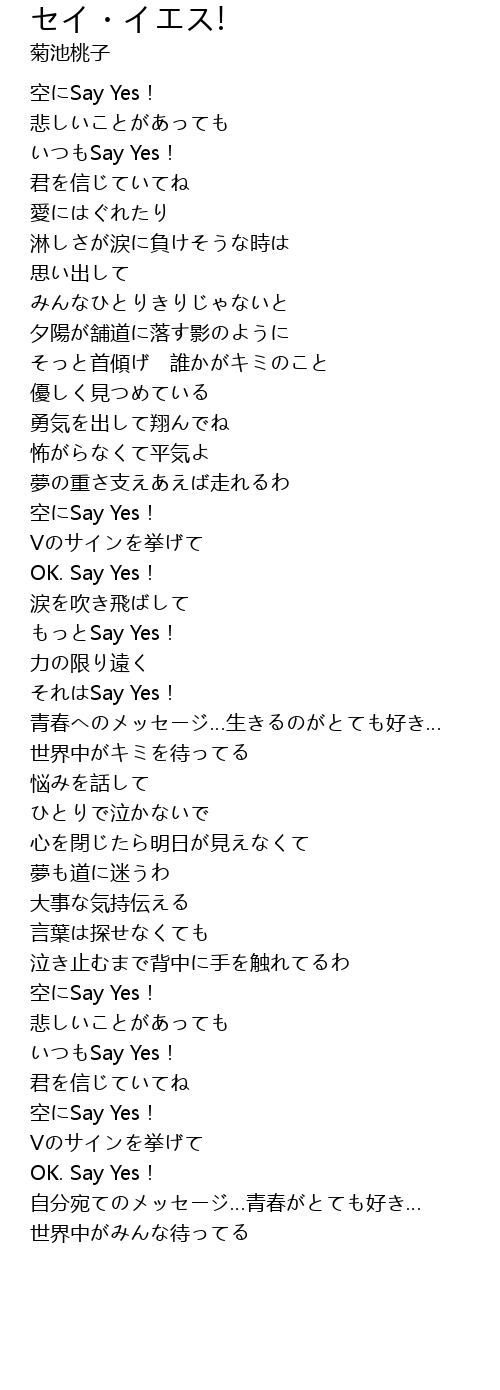 | [01:50.120] | Say Yes! |