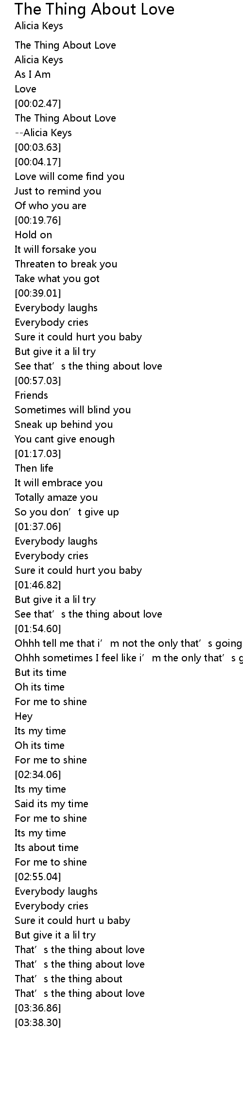 | [00:03.34] | --Alicia Keys |