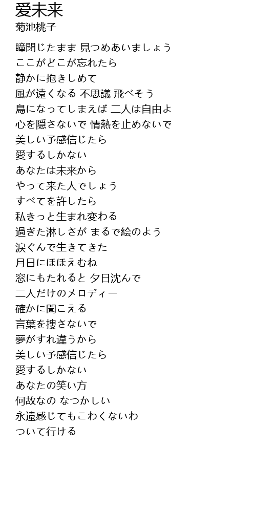 瞳閉じたまま 見つめあいましょう |