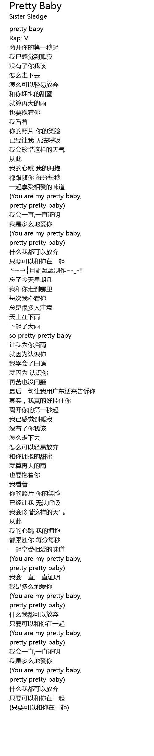 | [01:22.60] | (You are my pretty baby, |