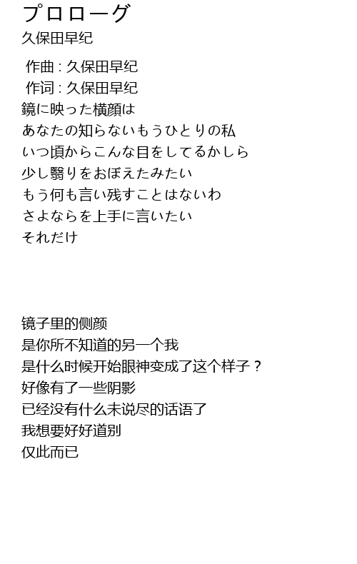 | [00:01.00] | 作词 : 久保田早纪 |
