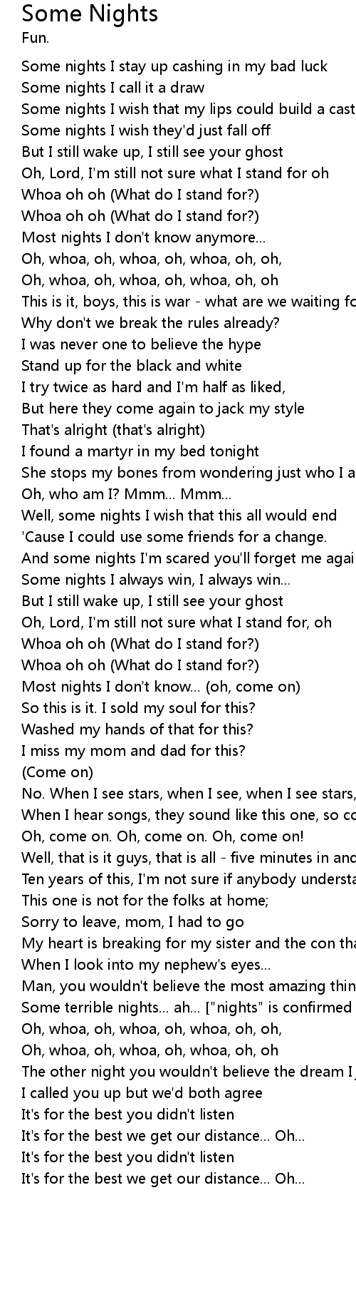 Most nights I don't know... (oh, come on) |