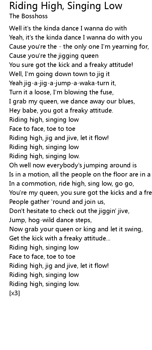 In a commotion, ride high, sing low, go go, |
