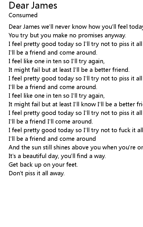 Dear James we'll never know how you'll feel today, |