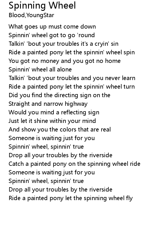 | [01:35.34] | Spinnin' wheel, spinnin' true |