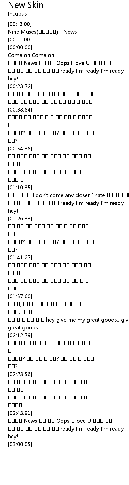 | [02:44.54] | 헤어지잔 News 이제 와서 Oops, I love U 여기서 멈춰 |
