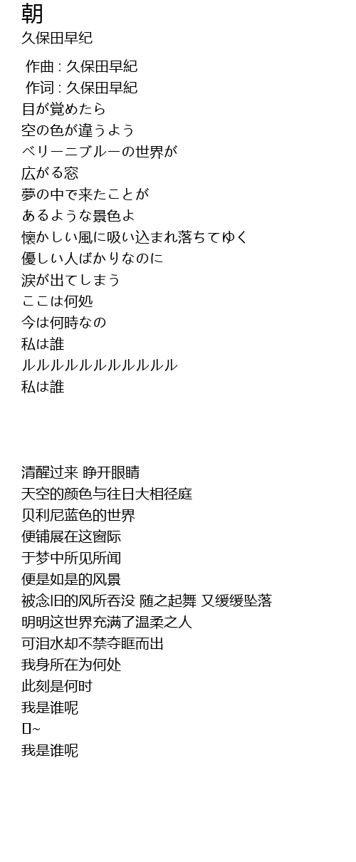 | [00:01.00] | 作词 : 久保田早紀 |