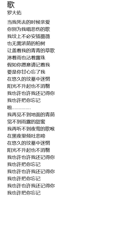 | [00:22.100] | 我坟上不必安插蔷薇 |