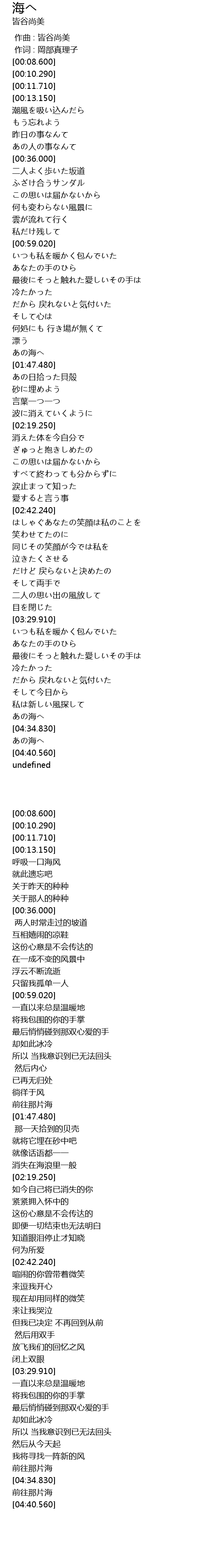 | [03:57.340] | 最後にそっと触れた愛しいその手は |
