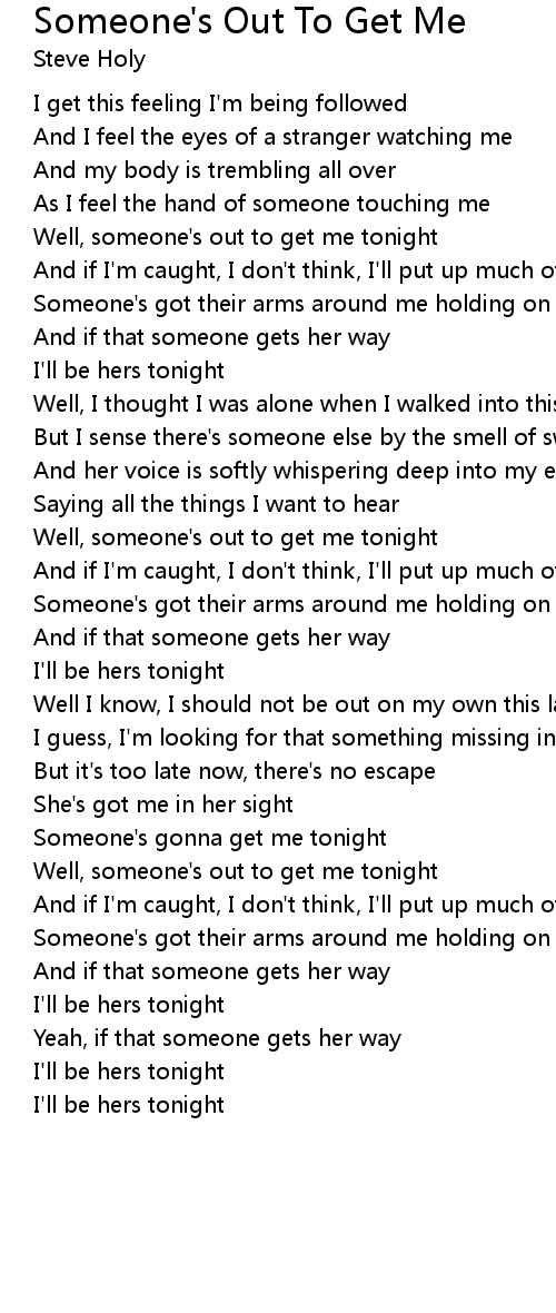 Well, someone's out to get me tonight |