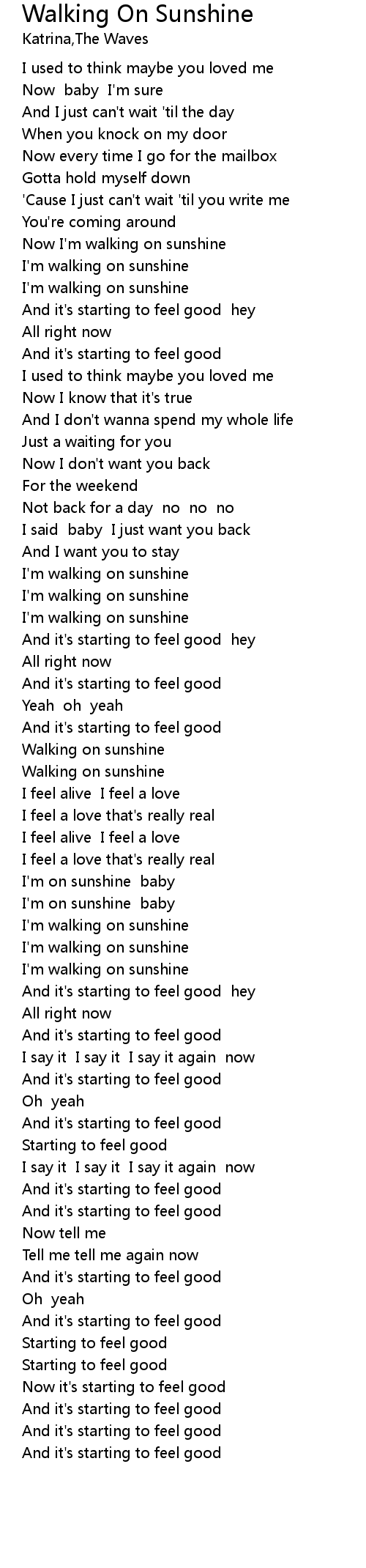 | [02:23.53] | Walking on sunshine |