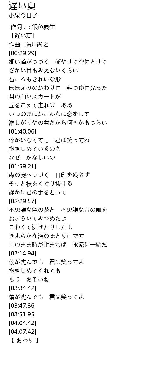 | [00:00.00] | 作词 : ∶銀色夏生 |